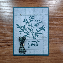 Ok, except that I put my inky finger down on my image at the join of two of the branches and made a smear that had nothing to do with the stamp or the paper and everything to do with the fact that I cannot get near an ink pad without getting ink on my fingers. Even when the ink pad is closed. And this is why positioning is so important, the greeting will just cover the finger print perfectly. But I could not have covered the inking error on the leaf part of the image.